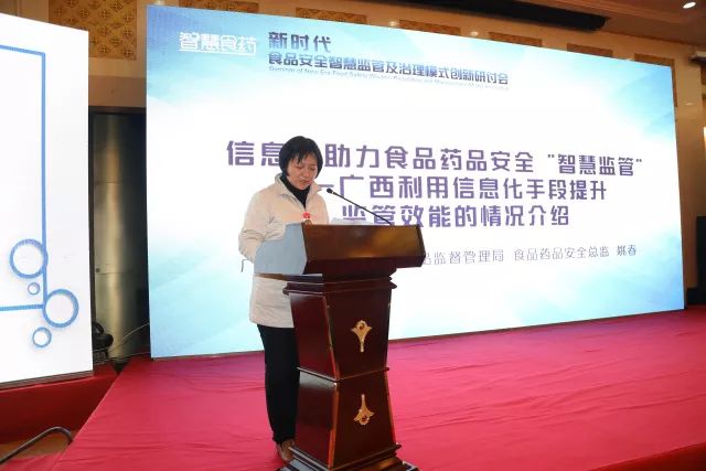 在“智慧监管”的新方向下,各地食品药品监管部门积极开展基层实践,开展了卓有成效的工作,实现了“顶层设计”和“精准落地”的良性互动和高度融合。会上,广西壮族自治区食品药品安全总监姚春发表题为《信息化助力食品药品安全“智慧监管”》的主题演讲,介绍了广西利用信息化手段提升监管效能的情况。姚春指出,广西局已在全区食药监系统网络平台建设和食品药品安全数据中心建设方面取得一定成效。自治区、市、县三级食品药品监管系统网络环境平台和业务支撑平台已经建成,可实现办公局域网、互联网、视频会议专网的无缝融合对接;自治区食品药品云计算中心和北海分中心已初步建成,构建了全区云计算服务、存储、安全可控的硬件网络环境,建设企业电子证照、企业信用档案、日常监管、稽查执法、监督抽检、执业药师、政策法规、投诉举报、综合业务统计等9大数据库。