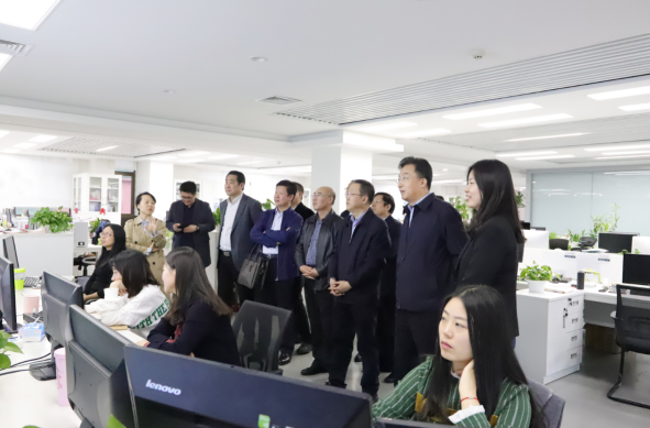 图为杨凤屹一行参观中国健康传媒集团舆情中心。(中国食品药品网记者王宣淞 摄)