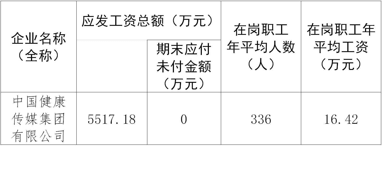 2019年中国健康传媒集团有限公司工资总额信息披露
